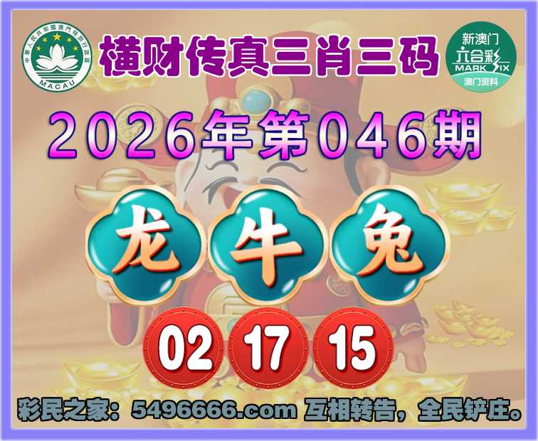 046期:『横财传真』 🌲三肖三码🌲【龙牛】【02.17.15】开:兔03