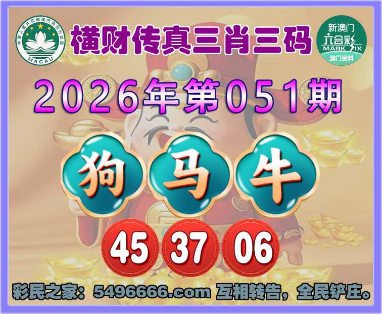051期:『横财传真』 🌲三肖三码🌲【狗牛】【45.37.06】开:马01