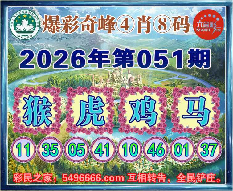 051期:《爆彩奇峰》 🍟④肖⑧码🍟【猴虎鸡】开:马01