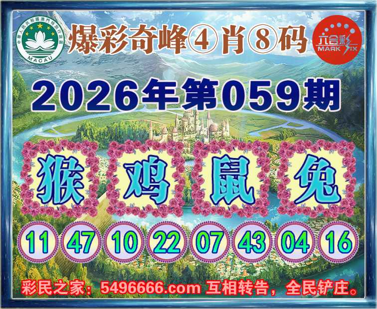 059期:《爆彩奇峰》 🍟④肖⑧码🍟【猴鼠兔】开:鸡10