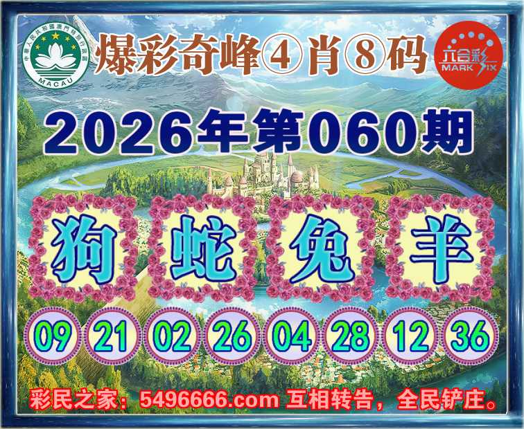 060期:《爆彩奇峰》 🍟④肖⑧码🍟【蛇兔羊】开:狗09