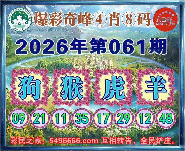 061期:《爆彩奇峰》 🍟④肖⑧码🍟【狗猴羊】开:虎29