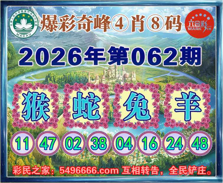 062期:《爆彩奇峰》 🍟④肖⑧码🍟【猴蛇兔】开:羊24