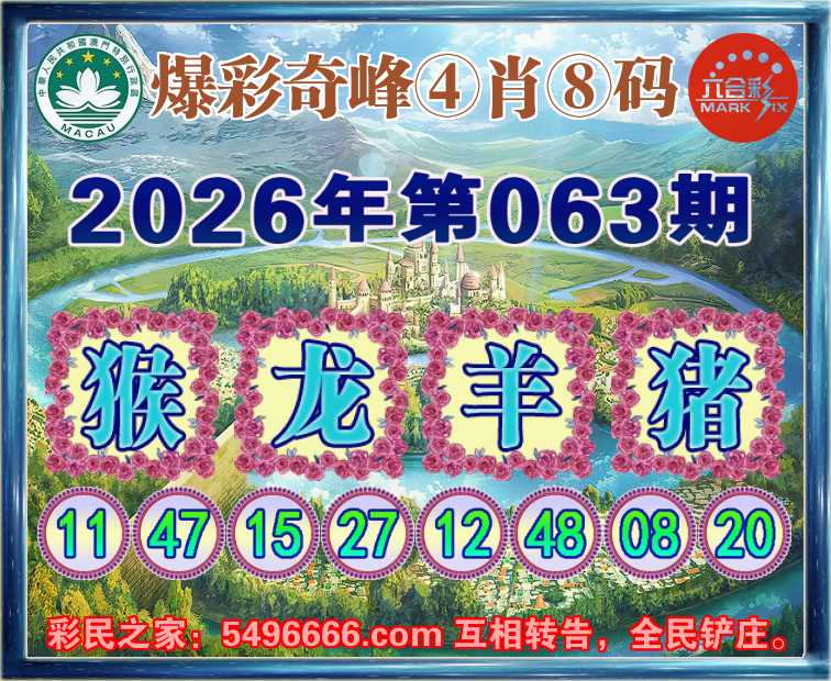 063期:《爆彩奇峰》 🍟④肖⑧码🍟【猴龙羊猪】开:兔28