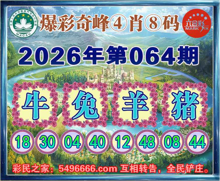 064期:《爆彩奇峰》 🍟④肖⑧码🍟【兔羊猪】开:牛18