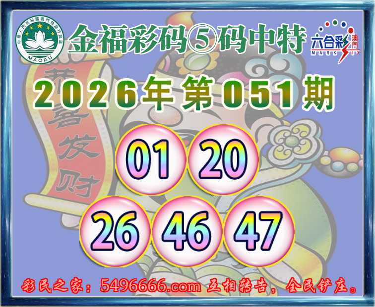051期:『金福彩码』 🥓⑤码中特🥓【01.20.26.46.47】开:01