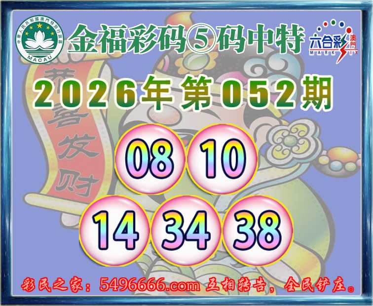 052期:『金福彩码』 🥓⑤码中特🥓【08.10.14.34.38】开:38