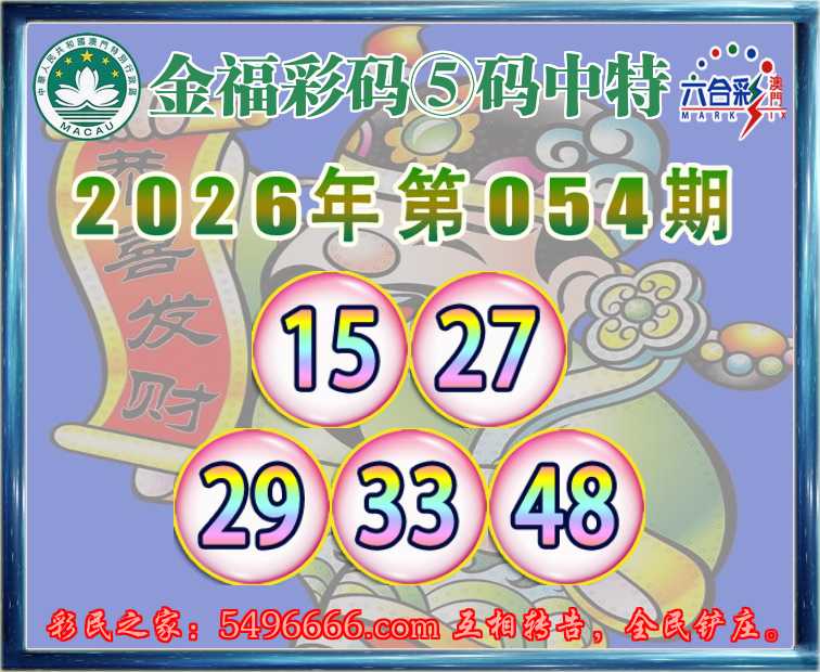 054期:『金福彩码』 🥓⑤码中特🥓【15.27.29.33.48】开:48