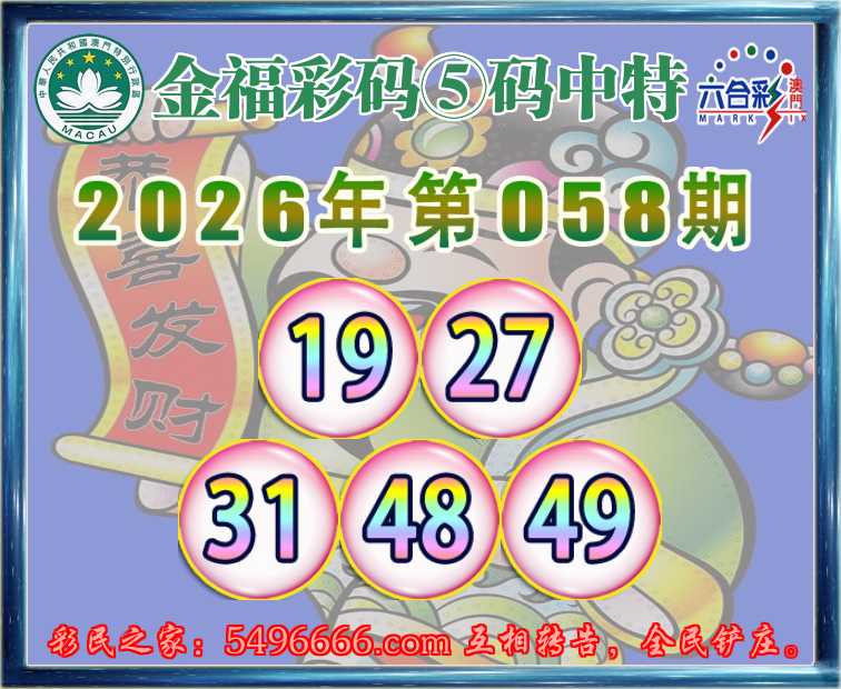 058期:『金福彩码』 🥓⑤码中特🥓【19.27.31.48.49】开:31