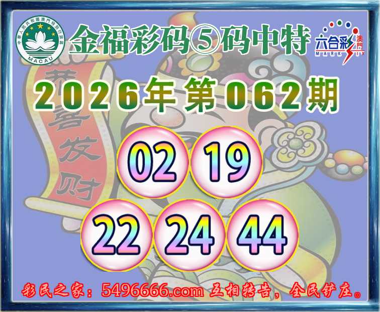 062期:『金福彩码』 🥓⑤码中特🥓【02.19.22.24.44】开:24