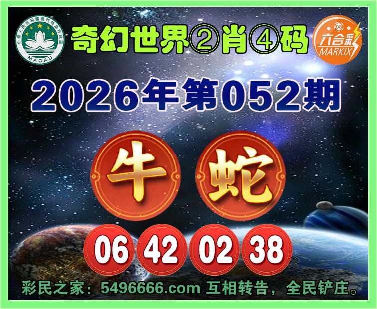 052期:『奇幻世界』 🧸②肖④码🧸【牛】【06.42.02.38】开:蛇38