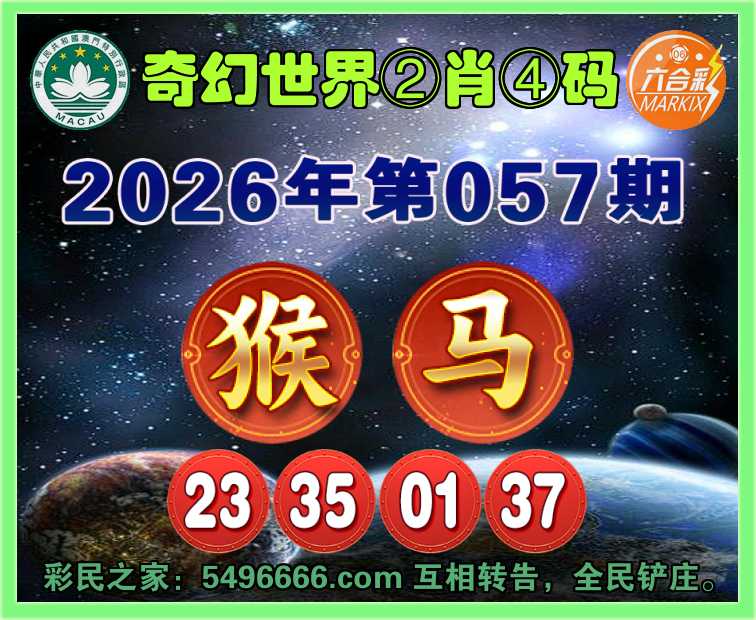 057期:『奇幻世界』 🧸②肖④码🧸【马】【23.35.01.37】开:猴23