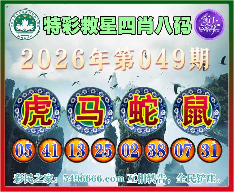 049期:《特彩救星》 🏅四肖八码🏅【虎蛇鼠】开:马13
