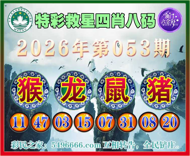053期:《特彩救星》 🏅四肖八码🏅【猴鼠猪】开:龙15