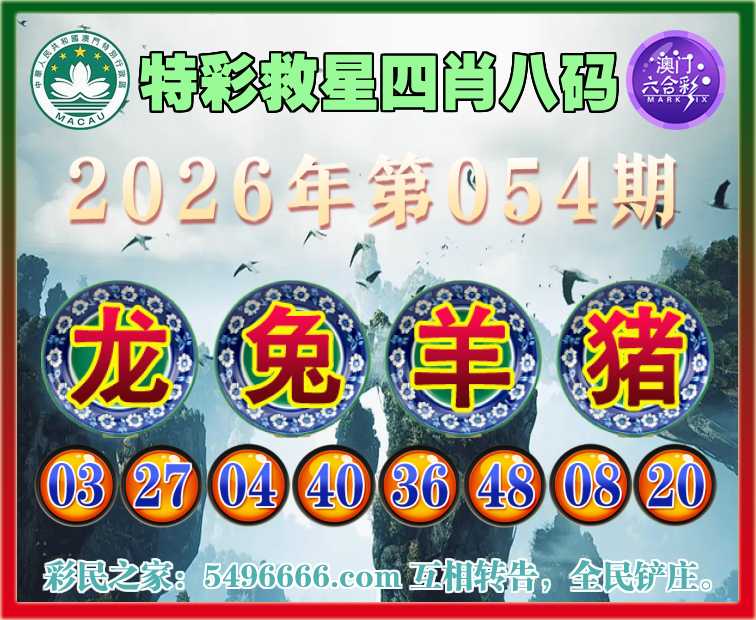 054期:《特彩救星》 🏅四肖八码🏅【龙兔猪】开:羊48