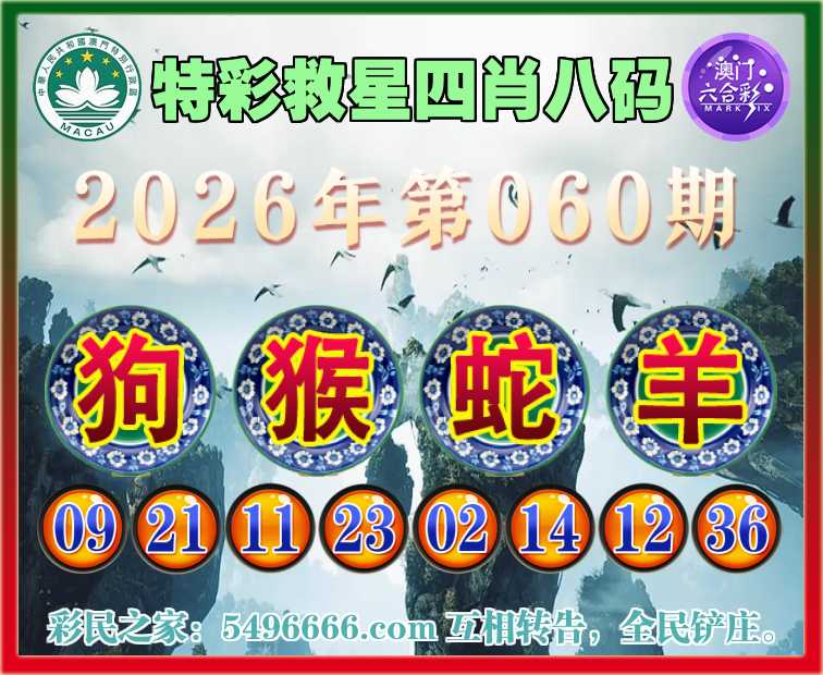 060期:《特彩救星》 🏅四肖八码🏅【猴蛇羊】开:狗09