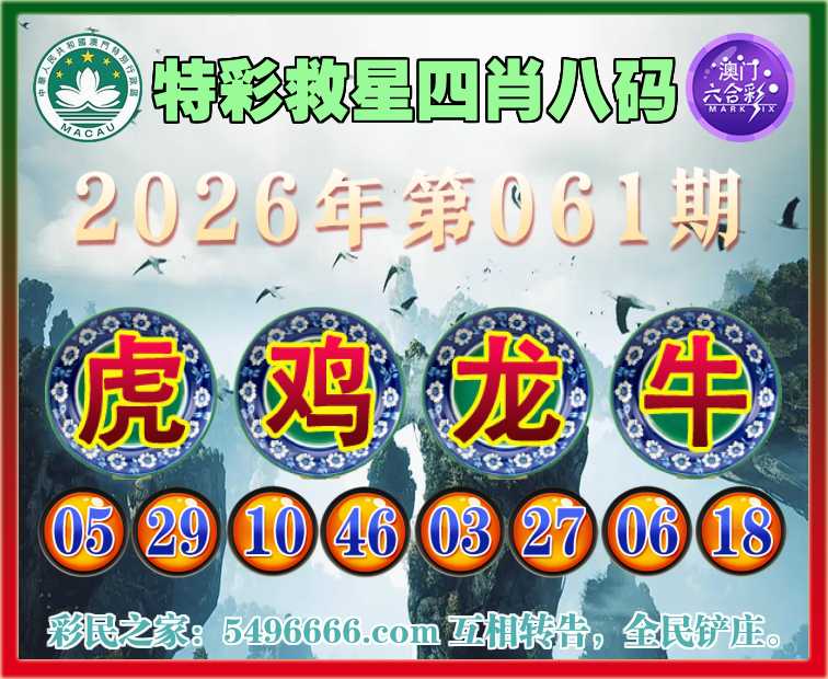 061期:《特彩救星》 🏅四肖八码🏅【鸡龙牛】开:虎29