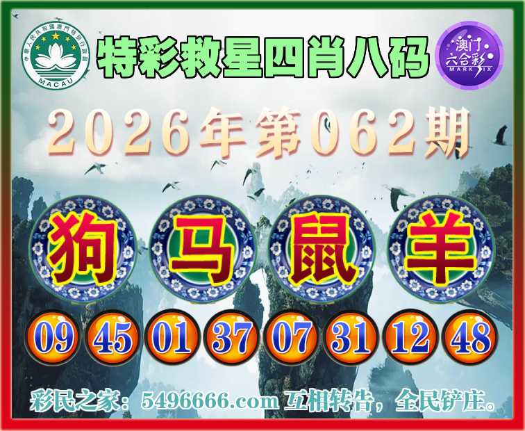 062期:《特彩救星》 🏅四肖八码🏅【狗马鼠】开:羊24准实力见证