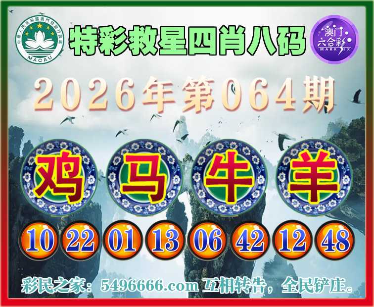 064期:《特彩救星》 🏅四肖八码🏅【鸡马羊】开:牛18准实力见证