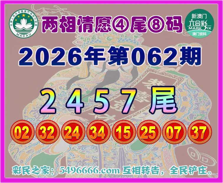 062期:《两相情愿》 🍎④尾⑧码🍎【2457尾】开:24