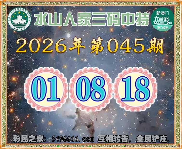 045期:『水山人家』 🥼三码中特🥼【01.08.18】开:01