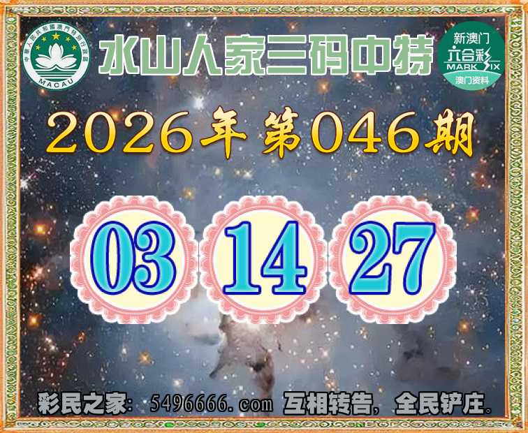 046期:『水山人家』 🥼三码中特🥼【03.14.27】开:03