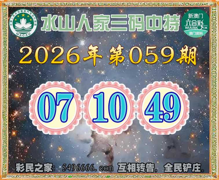 059期:『水山人家』 🥼三码中特🥼【07.10.49】开:10