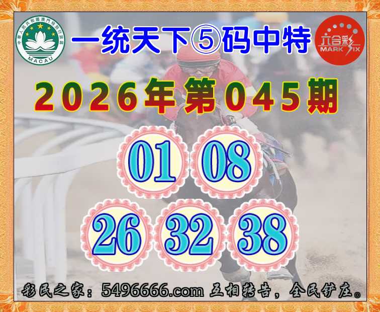 045期:《一统天下》 ♦️⑤码中特♦️【01.08.26.32.38】开:01