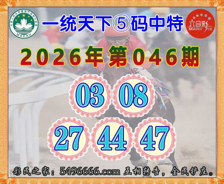 046期:《一统天下》 ♦️⑤码中特♦️【03.08.27.44.47】开:03