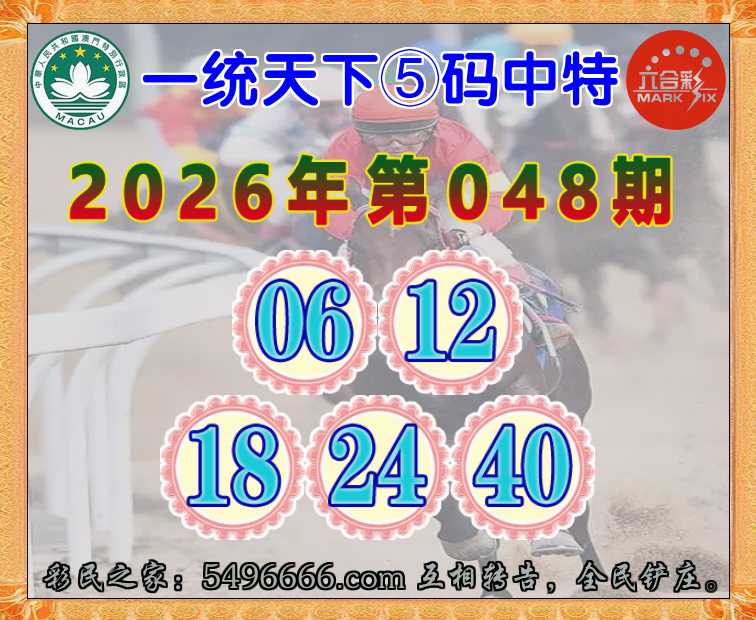 048期:《一统天下》 ♦️⑤码中特♦️【06.12.18.24.40】开:24