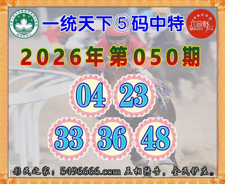 050期:《一统天下》 ♦️⑤码中特♦️【04.23.33.36.48】开:23