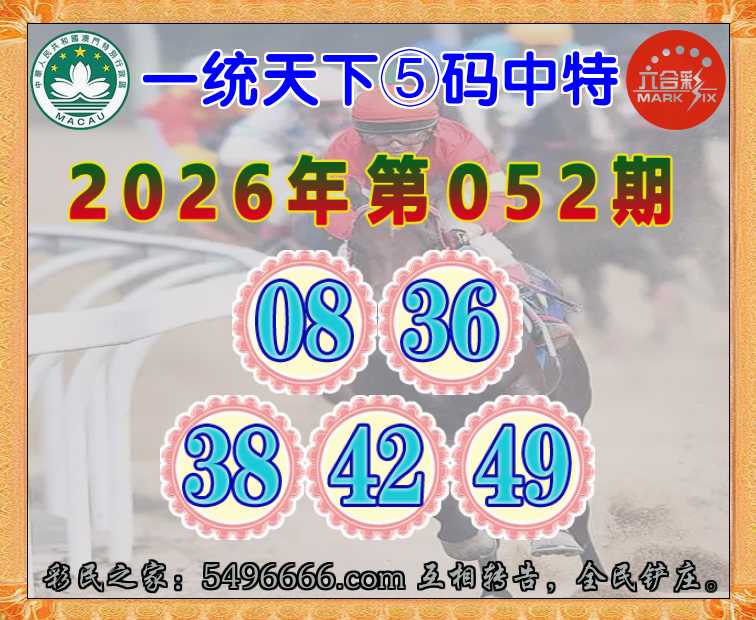 052期:《一统天下》 ♦️⑤码中特♦️【08.36.38.42.49】开:38