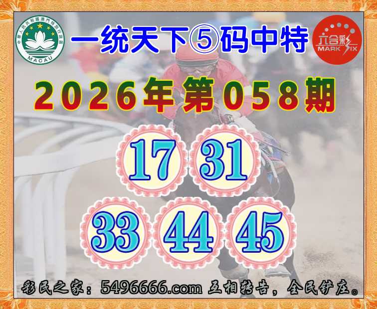 058期:《一统天下》 ♦️⑤码中特♦️【17.31.33.44.45】开:31