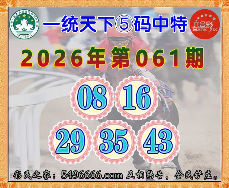 061期:《一统天下》 ♦️⑤码中特♦️【08.16.29.35.43】开:29