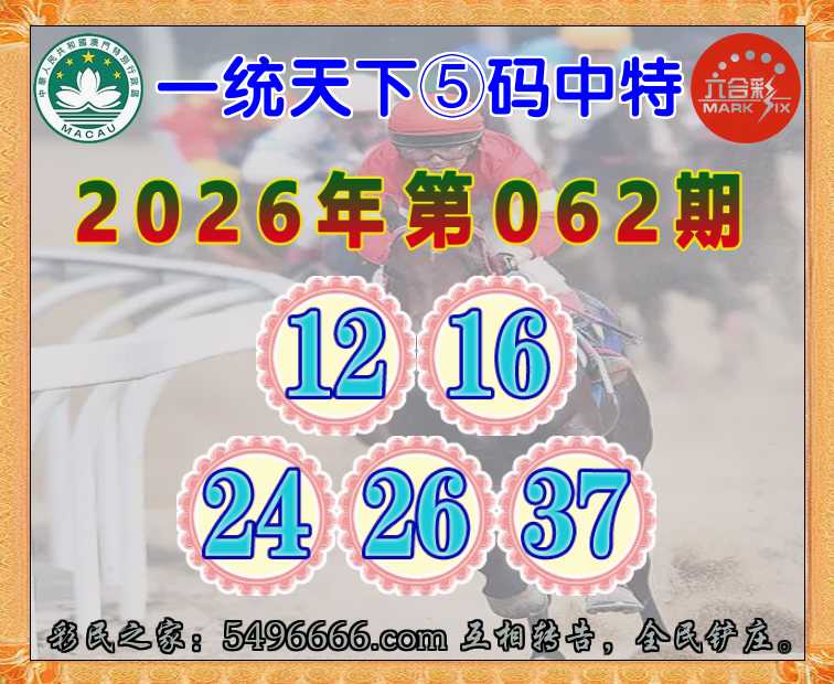 062期:《一统天下》 ♦️⑤码中特♦️【12.16.24.26.37】开:24